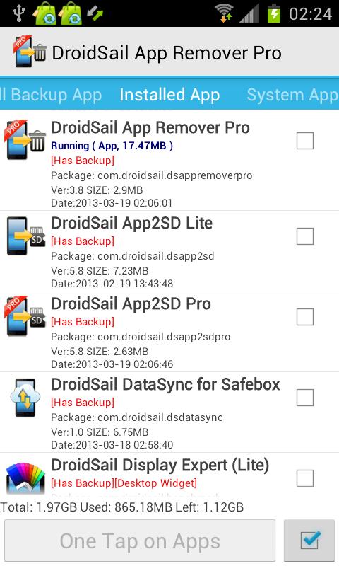 This is enhanced version of "Droidsail Super AppRemover Lite", compare to lite version, it: